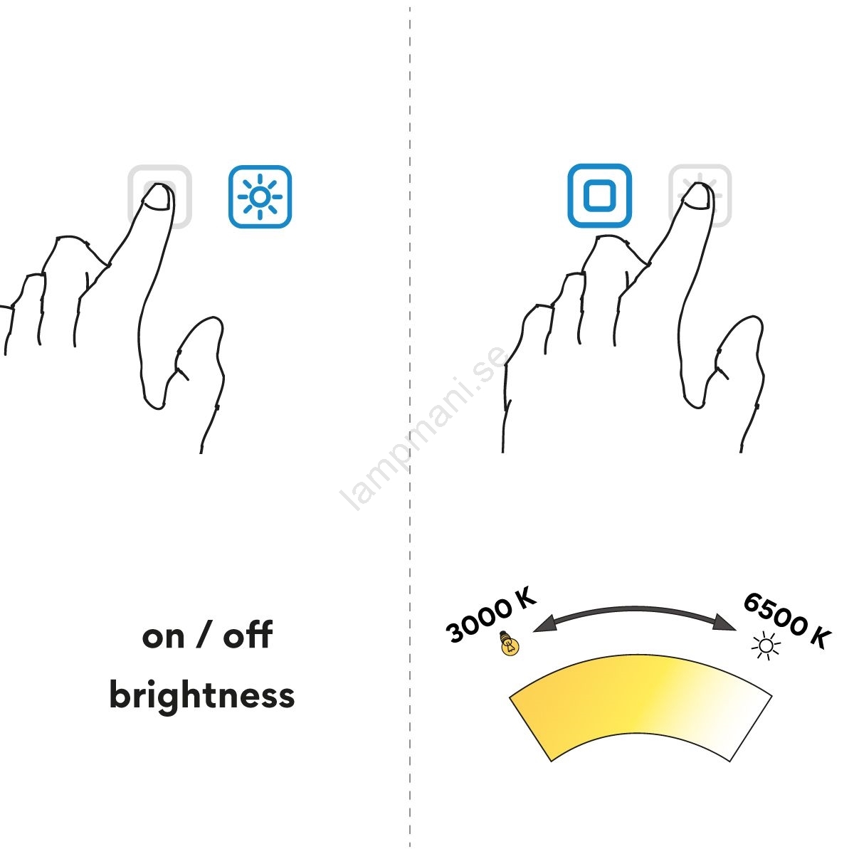 • Steglös justering av ljusintensitet och färgtemperatur.