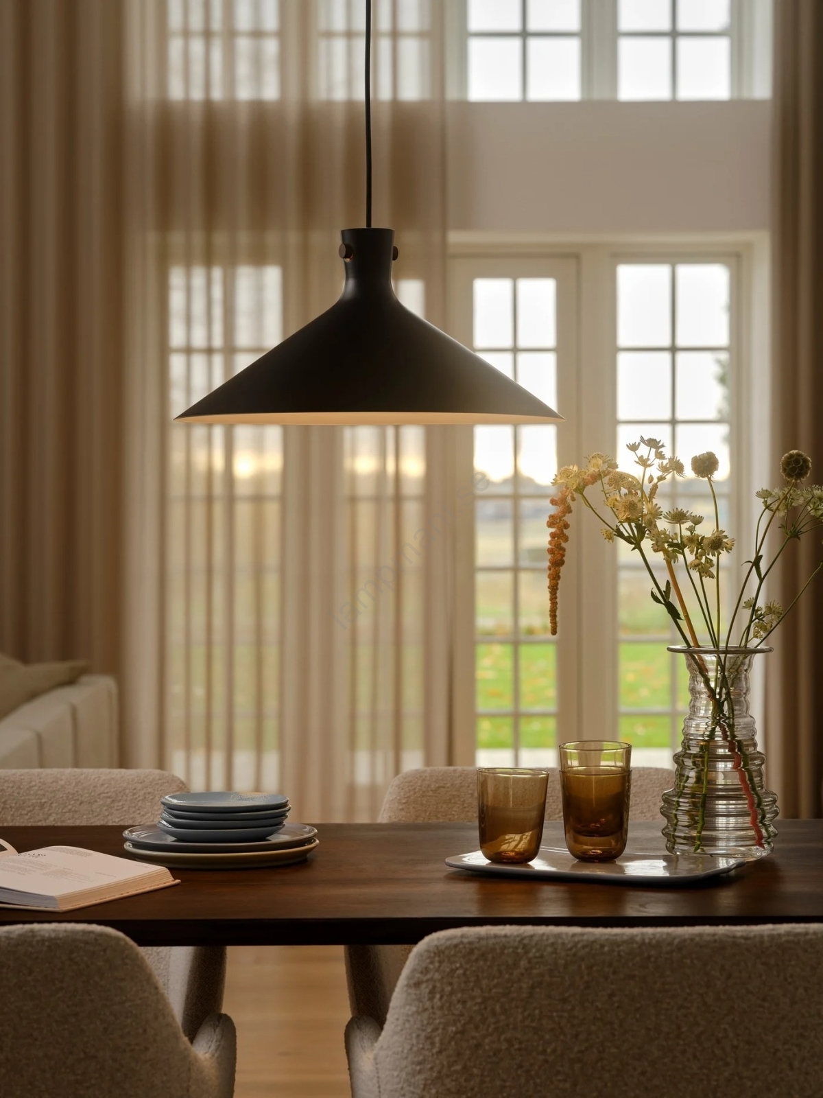 Nordlux - Pendellampa på vajer DORINA 1xE27/60W/230V svart Ø 45 cm kännetecknar snygg och funktionell design. En glödlampa med E27 lock är lämplig för lampan. Här kan du köpa andra glödlampor till förmånliga priser. Du kommer att få ett intressant tillägg till ditt hem.