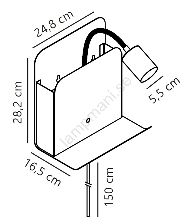 Nordlux - Vägglampa med hylla och USB ROOMI 1xGU10/8W/230V svart | Lampmani