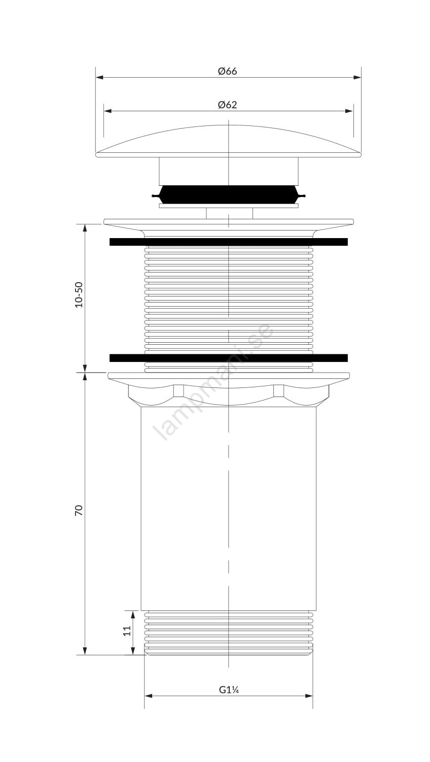 OMNIRES A716BL - Utloppsventil CLICK-CLACK pr. 6,6 cm matt svart | Lampmani