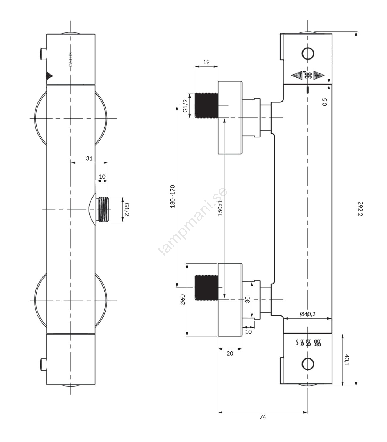 • Blandaren är utrustad med en termostatisk huvudenhet.
