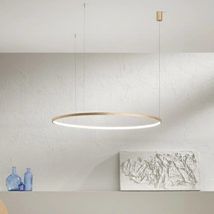 Ondaluce - Dimmbar LED-pendellampa på kabel SOEL LED/38W/230V Ø 80 cm guldig | Lampmani