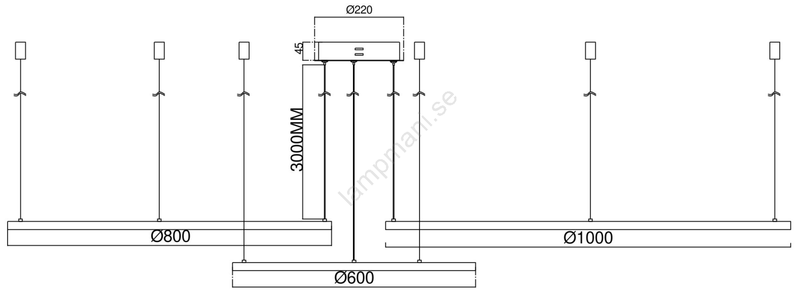 Ondaluce - LED-dimbar pendellampa med vajerupphängning SOEL LED/28W/230V+LED/38W+LED/47W | Lampmani