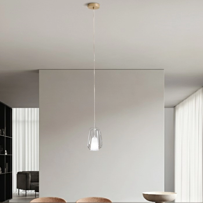 Ondaluce - Pendellampa THELMA på kabel 1xE27/15W/230V Ø 19 cm guld/klarglas kännetecknar snygg och funktionell design. En glödlampa med E27 lock är lämplig för lampan. Här kan du köpa andra glödlampor till förmånliga priser. Du kommer att få ett intressant tillägg till ditt hem.