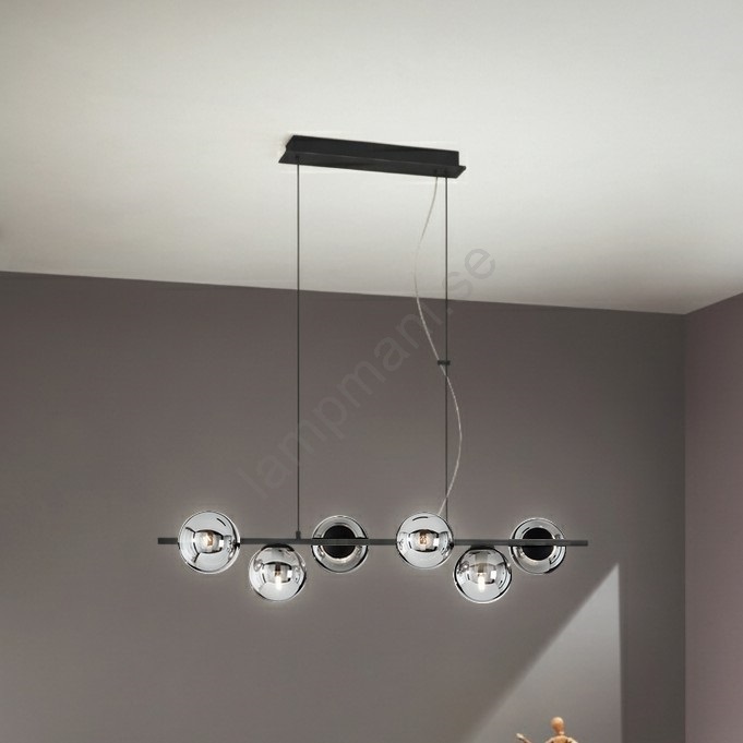 Ondaluce - Taklampa på kabel MONILE 6xE14/10W/230V svart/rökfärgad kännetecknar snygg och funktionell design. En glödlampa med E14 lock är lämplig för lampan. Här kan du köpa andra glödlampor till förmånliga priser. Du kommer att få ett intressant tillägg till ditt hem.
