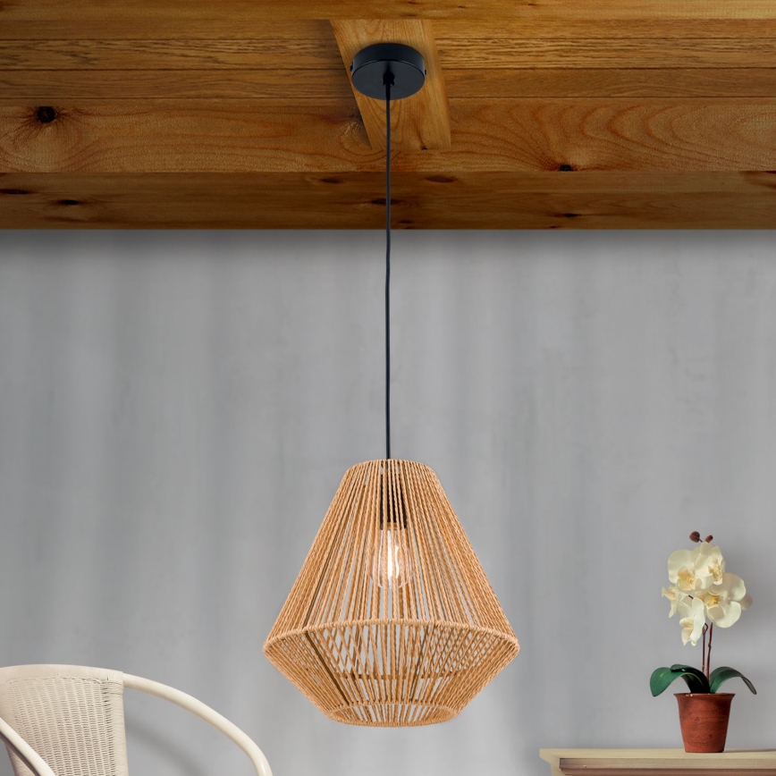 Ljuskrona med textilsladd JUNGLE 1xE27/40W/230V diameter 31 cm hampa