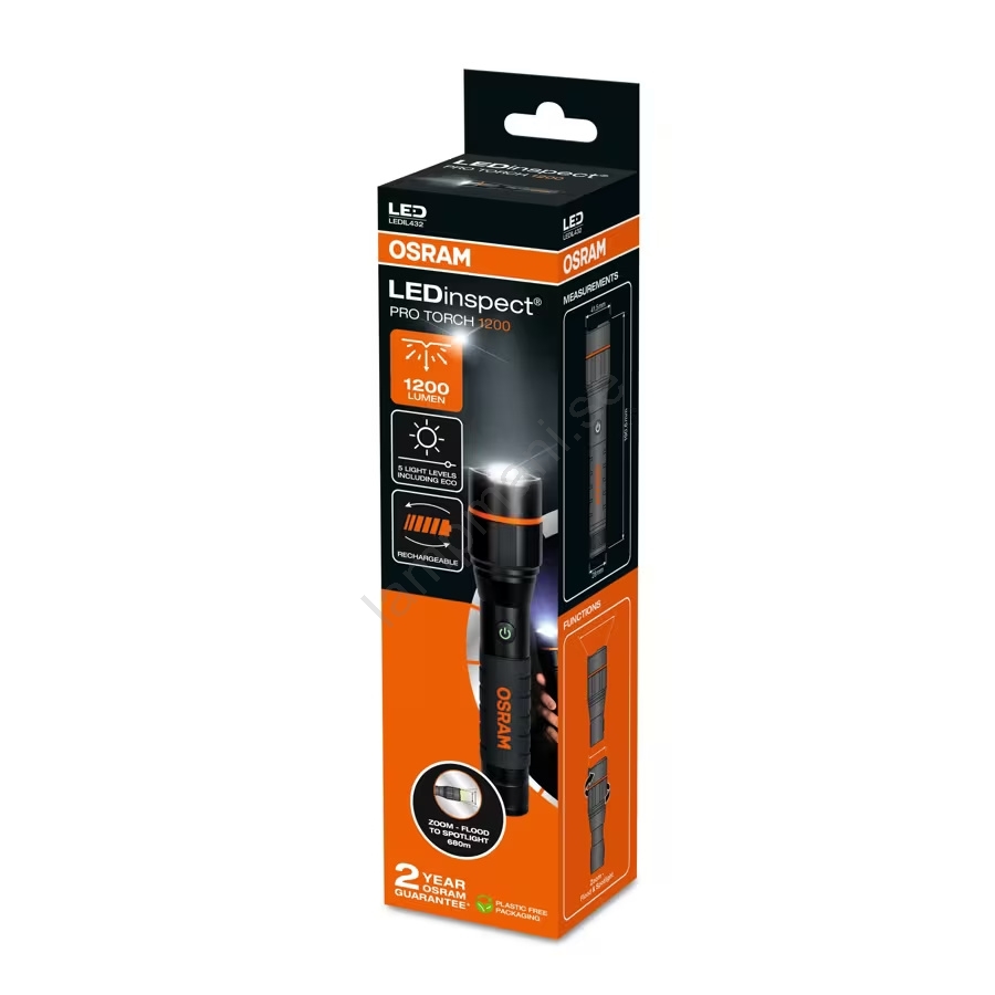 • Med imponerande 1200 lumen levererar ficklampan kraftfullt, högintensivt ljus.