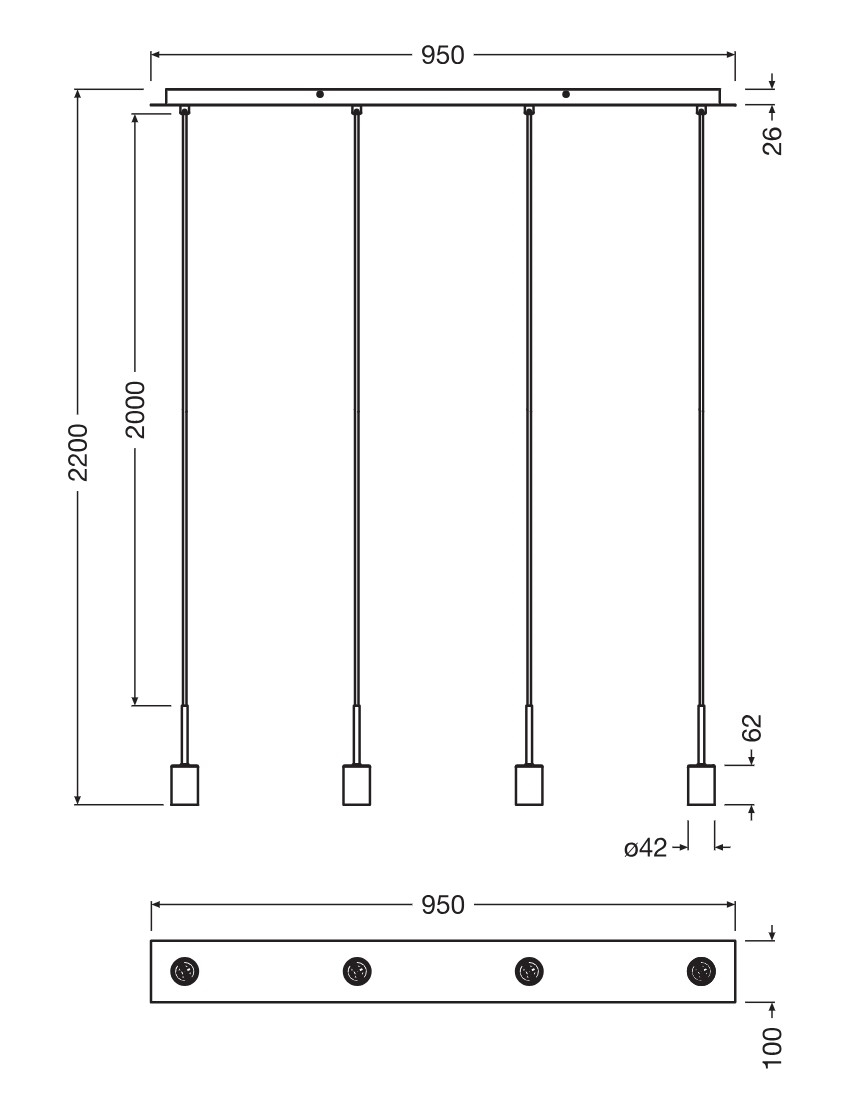 • Osram - Nätkabel NEEDLE PENDANT 4xE27/25W/230V antracit
