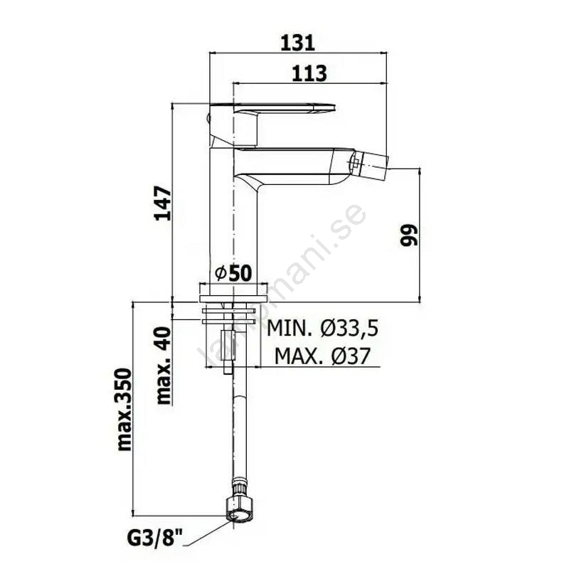 • Bidetblandare med ettgrepp för enkel vatteninställning.