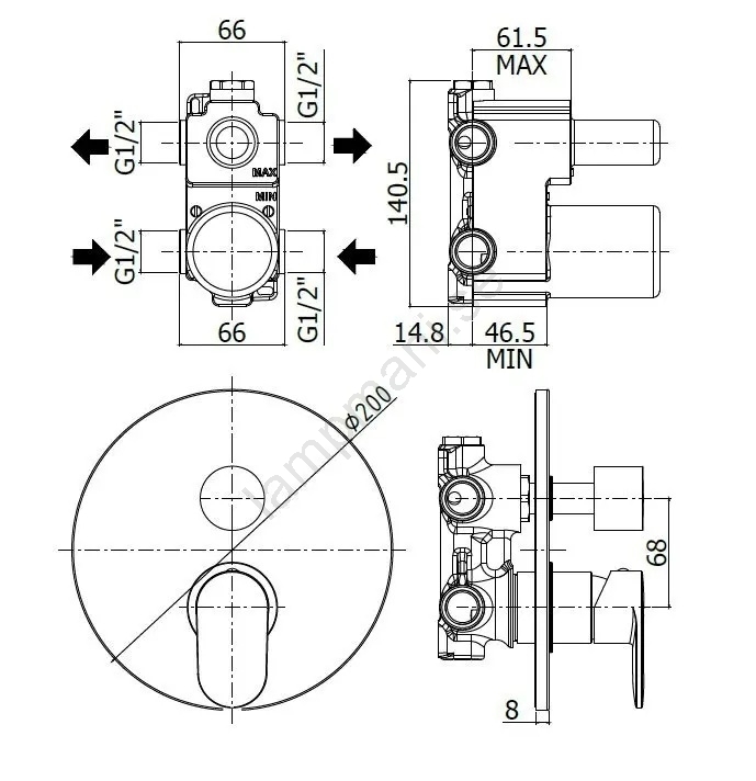 • Levereras inklusive inbyggnadsdel för dold montering.