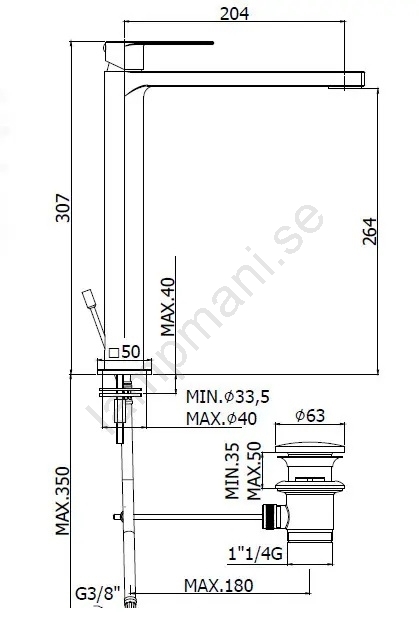 • Hög tvättställsblandare i modern, avskalad design.