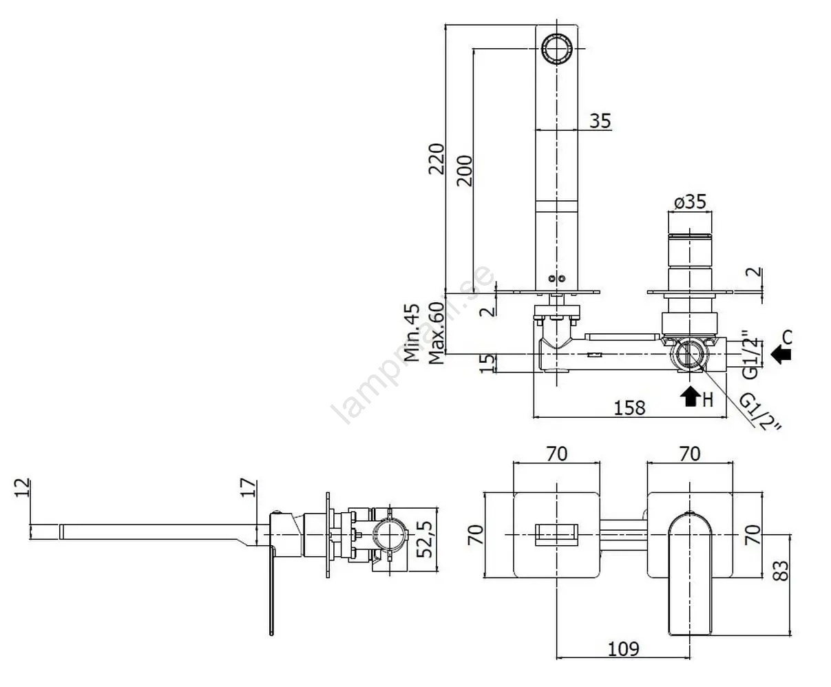 • Väggmontering för ett stilrent uttryck vid tvättstället.
