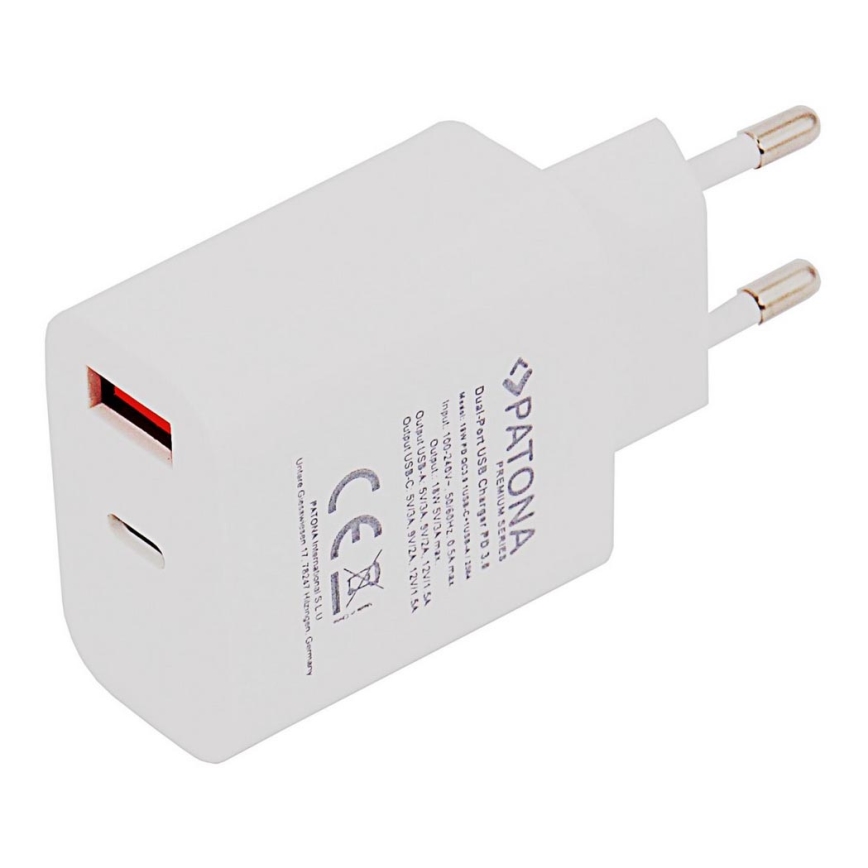 PATONA - Adapter med USB och USB-C port 18W strömförsörjning