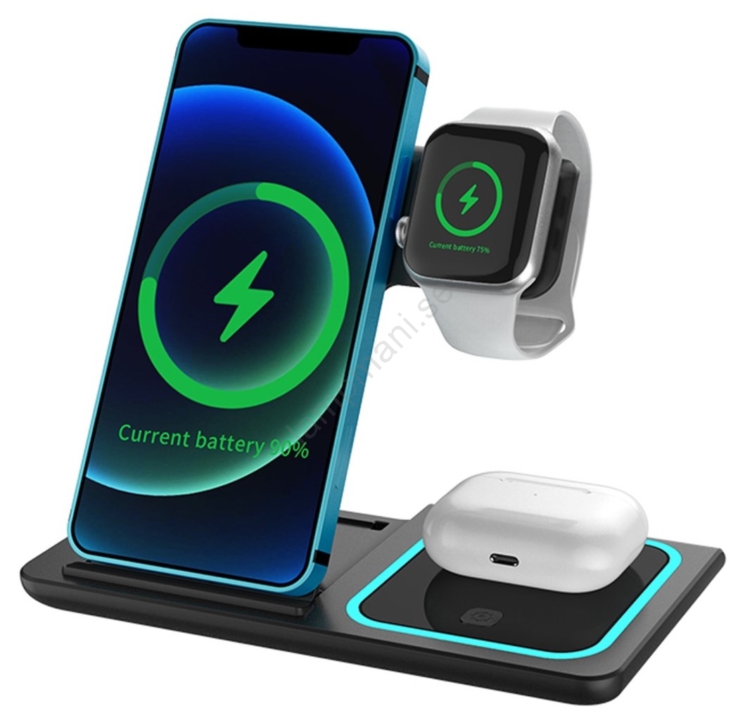 • 3in1 - laddningsstället används för att ladda tre enheter samtidigt (iPhone, Apple Watch, Airpods).