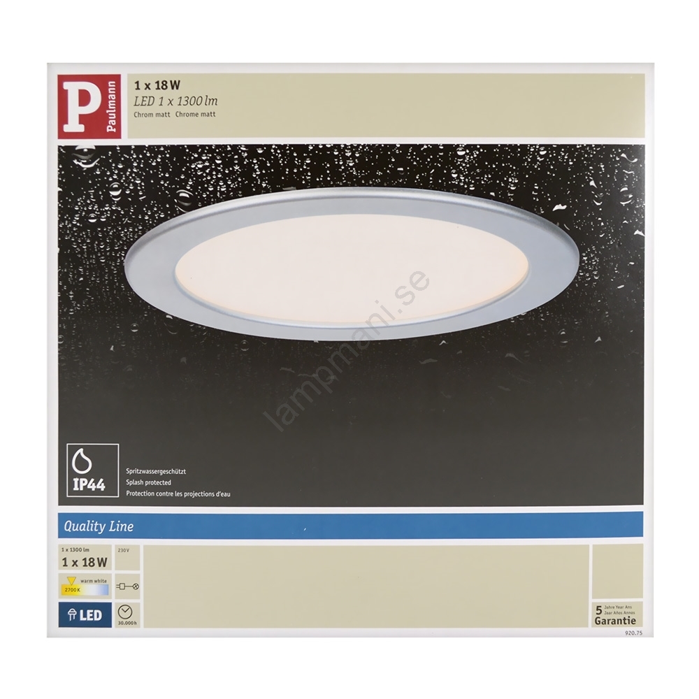 Paulmann 92075 - LED/18W infälld Badrumbelysning QUALITY LINE 230V IP44 | Lampmani