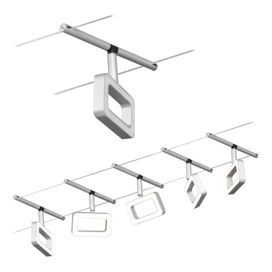 Paulmann 94481 – Set om 5 LED-spotlights, 4,8 W vardera, för vajersystemet FRAME 230 V, matt krom
