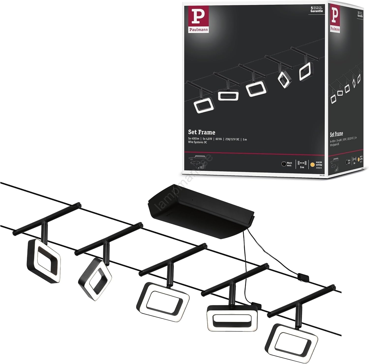 • Paulmann 94481 – Set om 5 LED-spotlights, 4,8 W vardera, för vajersystemet FRAME 230 V, matt krom
