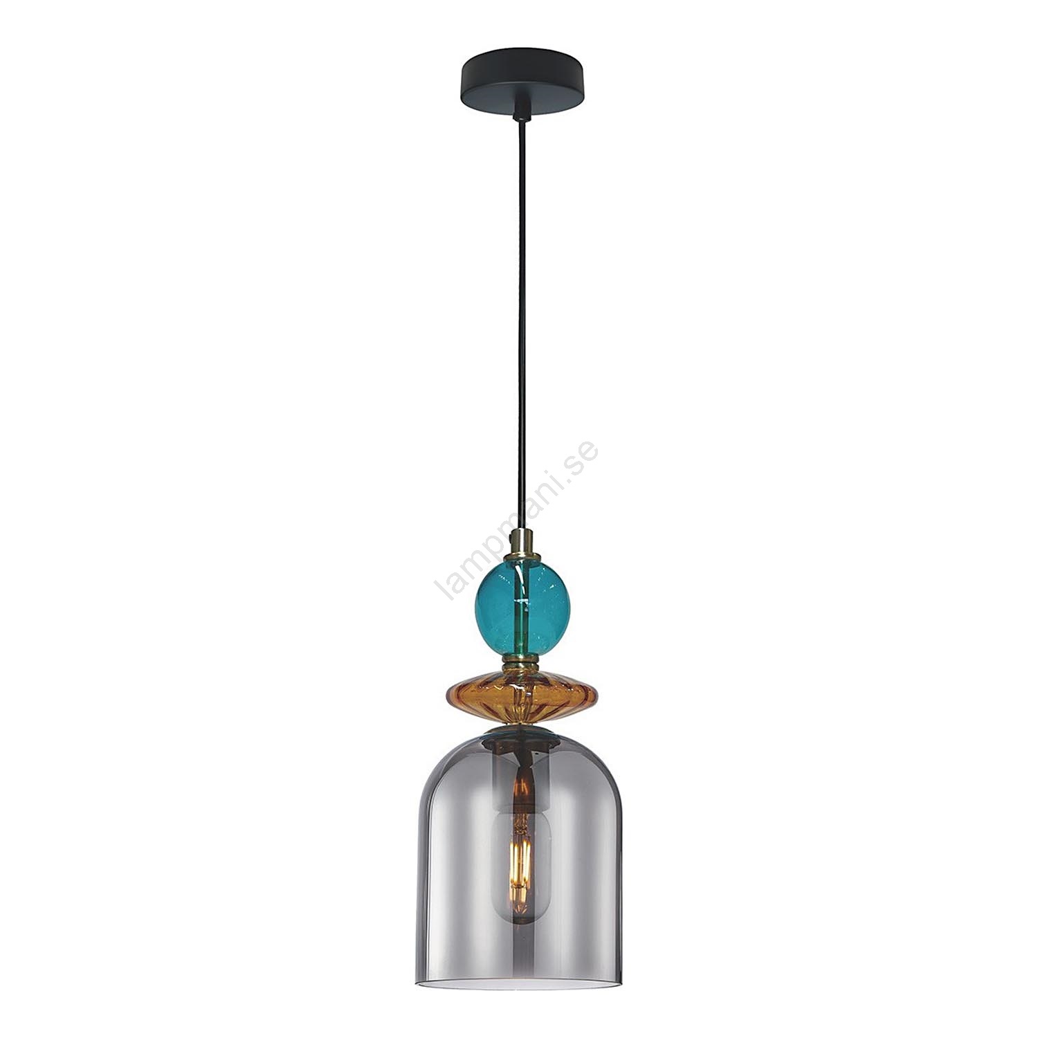 Pendellampa på vajer TROPEA 1xE27/15W/230V svart/rökblå/beige | Lampmani