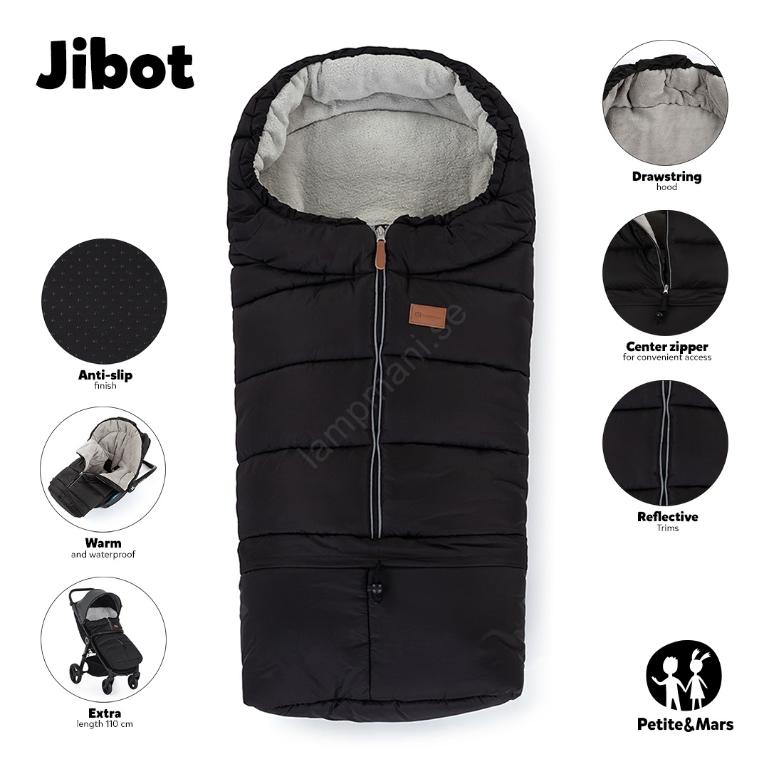 • Värmande förlängningsbar åkpåse Jibot 3-i-1 för bebis och värmande vantar Jasie för mamman till barnvagnen.