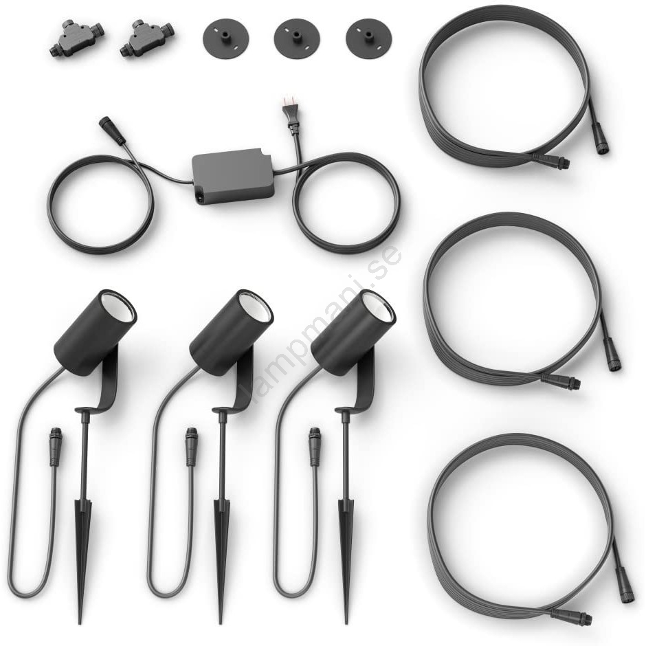 • Set med 3 dimbara LED RGB spotlights från Philips Hue-serien.