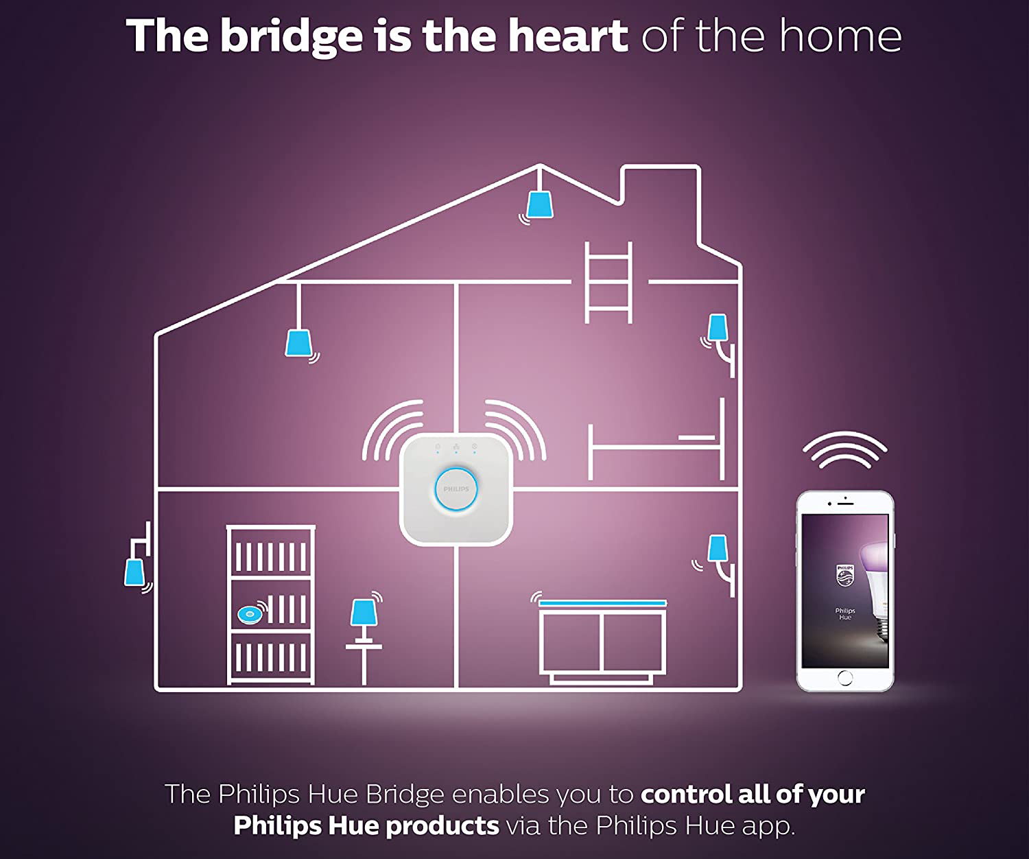 • Mobilappen Hue för iOS och Android låter dig styra alla lampor med en enda enhet.