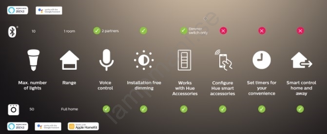 • Du kan ansluta upp till 50 lampor och 10 styrenheter från Hue-serien.