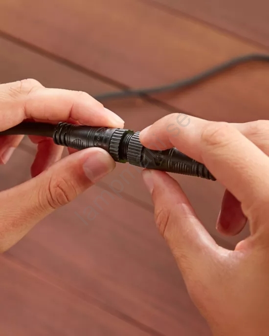 • Med den medföljande T-kontakten kan du koppla ihop två slingor och ansluta dem till en enda strömkälla.