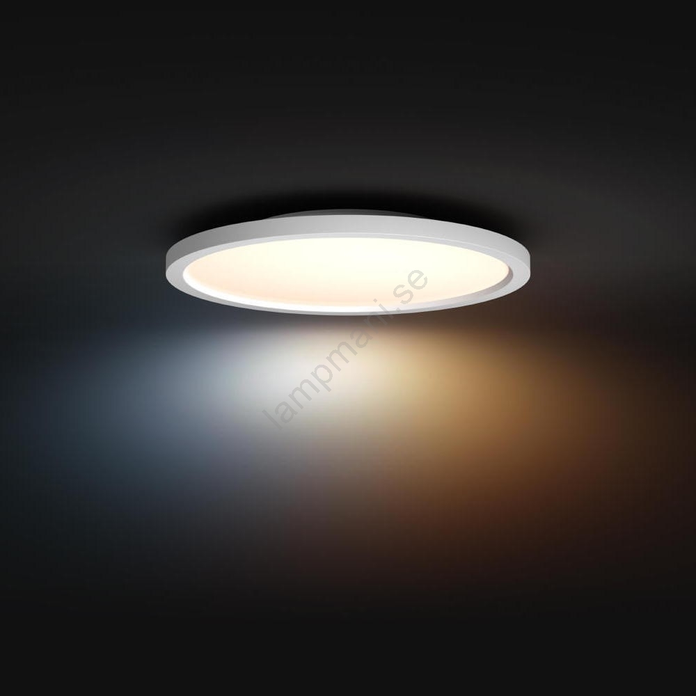 • Njut av ett mjukt ljus tack vare den vita taklampan Philips Hue White Ambiance med varmvit belysning.