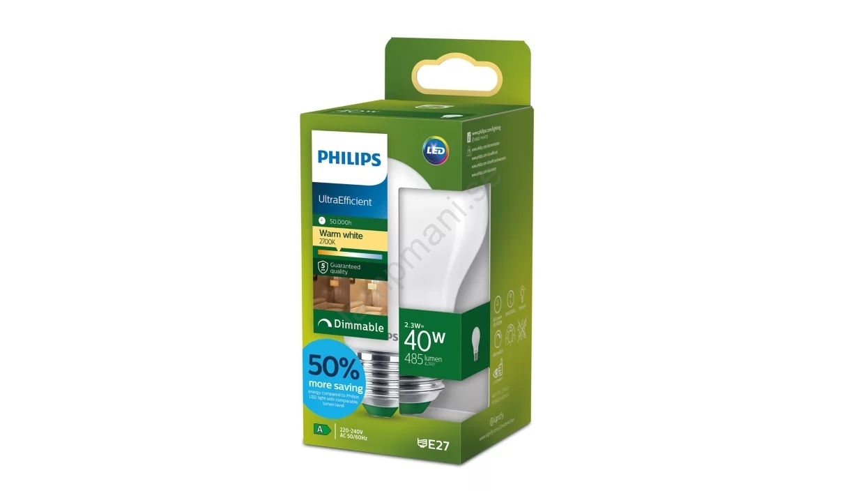 Philips ULTRAEFFICIENT A60 — dimbar LED-lampa, E27/2,3W/230V, 2700K | Lampmani