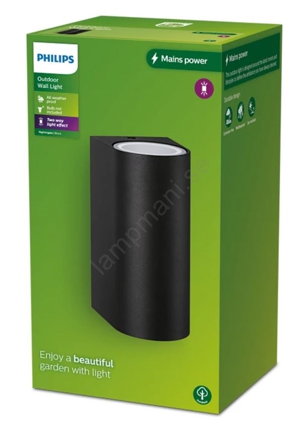 Philips - Vägglampa för utomhusbruk NIGHTINGALE 2xGU10/35W/230V IP44 kännetecknar snygg och funktionell design. En glödlampa med GU10 lock är lämplig för lampan. Här kan du köpa andra glödlampor till förmånliga priser. Du kommer att få ett intressant tillägg till ditt hem.