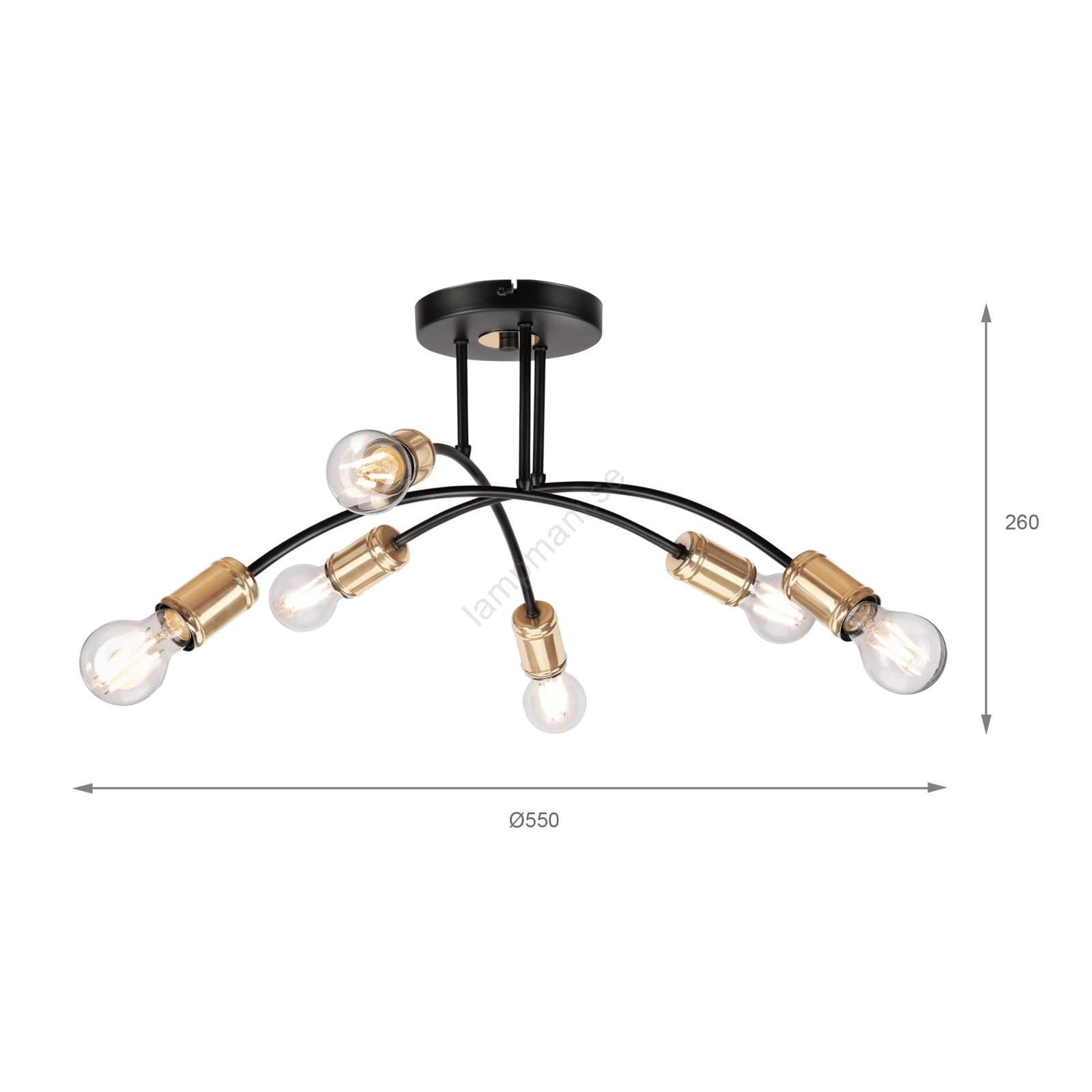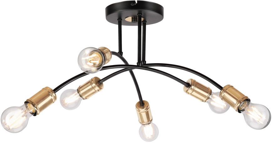 Plafondlampa ANYA 6xE27/15W/230V svart/guld kännetecknar snygg och funktionell design. En glödlampa med E27 lock är lämplig för lampan. Här kan du köpa andra glödlampor till förmånliga priser. Du kommer att få ett intressant tillägg till ditt hem.