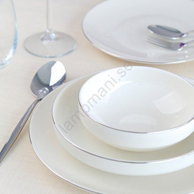 Porslinsservis, 24 delar — vit/silver | Lampmani