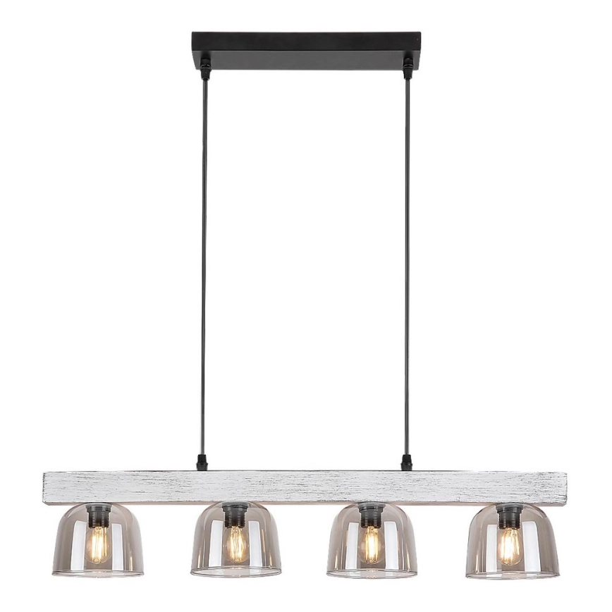 Den moderna taklampan Cardamom med 4 glödlampor blir en karaktäristisk detalj i ditt vardagsrum, matsal eller sovrum. Lampan, tillverkad av metall och trä, monteras i taket med en lång, fyrkantig, matt svart dekorativ bas. Elementet som håller lampans huvuden har en silver-ekfärg, medan klockformade skärmar är gjorda av tonat glas. Cardamom-lampan kan användas med fyra glödlampor, vardera med en effekt upp till 40W. Sockeltypen är E14. Beroende på dina preferenser kan du välja varmvitt eller naturligt vitt ljus för denna modell. Om lampan installeras i sovrummet rekommenderar vi glödlampor som avger varmvitt ljus för att skapa en mysig och intim atmosfär. Lampans bredd är 680 mm och avståndet från taket är 1200 mm. Denna modell levereras utan ljuskällor.