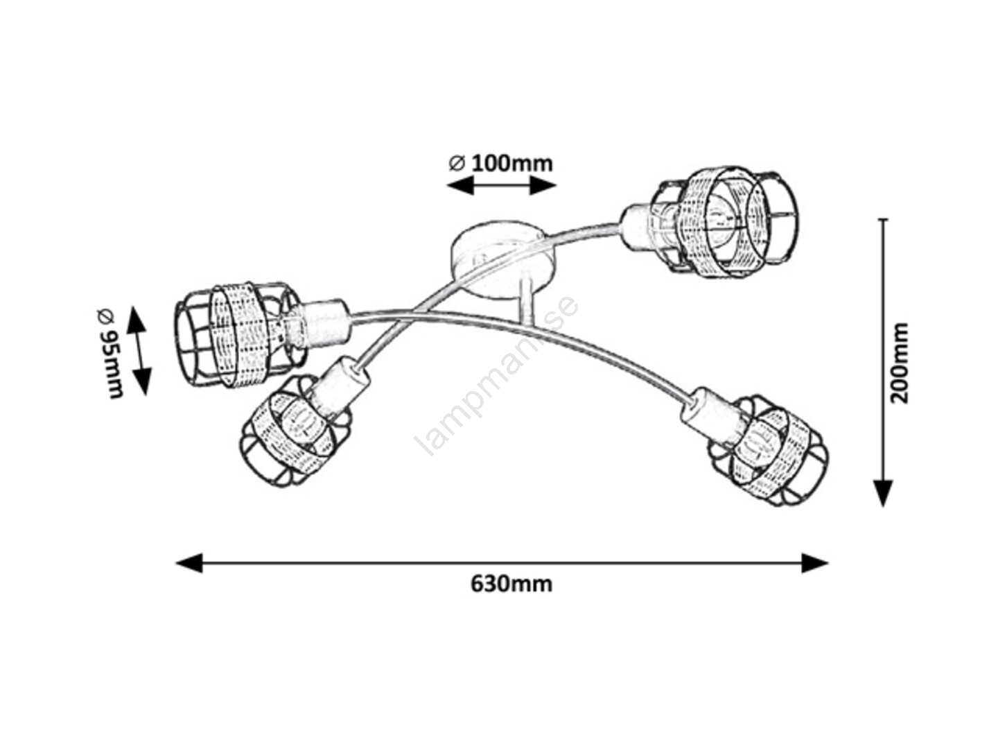 Spotlight Indiana med 4 lampor i industriell stil blir en karaktäristisk möbel i ditt moderna vardagsrum, sovrum, matsal eller kök. Denna mattsvarta modell, tillverkad i metall, kompletteras av skuggade lampskärmar och en naturlig vävd dekoration runt skärmarna. De fyra lamporna (två på varje bärstång) är placerade i ändarna på de korsade, rörliga bärstängerna, vilket gör att ljuset kan riktas efter behov i rummet. Indiana-lampan kan monteras i taket med en liten rund dekorativ bas. Denna spotlight kan användas med fyra lampor, vardera med en effekt på upp till 25W. Sockeltypen är E14. För att skapa en intim och mysig atmosfär rekommenderas lampor som avger varmt vitt ljus för denna modell. Måtten på spotlighten Indiana med 4 lampor är följande: bredd 630 mm, diameter på varje lampskärm 95 mm, avstånd från taket 200 mm. Denna modell levereras utan ljuskällor.