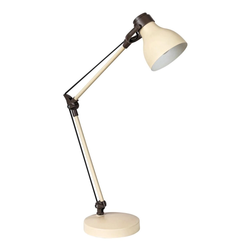 Tack vare sin beige-bruna färg och eleganta design gör metallbordslampan Carter ett utmärkt jobb i ditt arbetsrum eller på skrivborden för dina skolbarn. Den bruna sladden balanserar den karaktäristiska stilen. Med sin livfulla färg kan lampan även vara ett bra val för ett flickrum. Lampans höjd gör det möjligt att effektivt belysa en tillräckligt stor yta för läsning, skrivande och studier. När du placerar Carter-lampan bör du se till att den står på din högra sida för att inte skymma ljuset från lampan. Lampans arm är böjbar och skärmen kan justeras, så du kan när som helst anpassa höjd och vinkel på ljuset efter dina aktuella behov. Denna modell kan användas med en energisnål ljuskälla med en effekt på upp till 11 W och E14-sockel. Bordslampan Carter, utrustad med en vippswitch, har en bredd på 310 mm och en höjd på 580 mm. Lampan levereras utan glödlampa.
