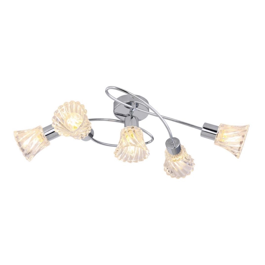 Spotlight Hestia med 5 lampor i klassisk stil blir en elegant möbel i ditt vardagsrum eller sovrum. Den kromade metallarmaturen, som påminner om slingrande rankor, kompletteras med klara glaslampkupor. Armaturen kan monteras i taket med en rund dekorativ bas. Det intressanta med de klockformade skärmarna är den vridna effekten av deras vågiga yta. De fem lamporna som riktas åt olika håll säkerställer tillräckligt med ljus i varje del av rummet. Denna takarmatur kan användas med fem lampor, vardera med en effekt på upp till 40W. Sockeltypen är E14. Om du vill förbättra en intim och mysig atmosfär, välj varmvita ljuskällor för denna armatur. Måtten på spotlight Hestia med 5 lampor är följande: bredd 635 mm, avstånd från taket 165 mm, installationsdiameter 100 mm. Denna modell levereras utan ljuskällor.