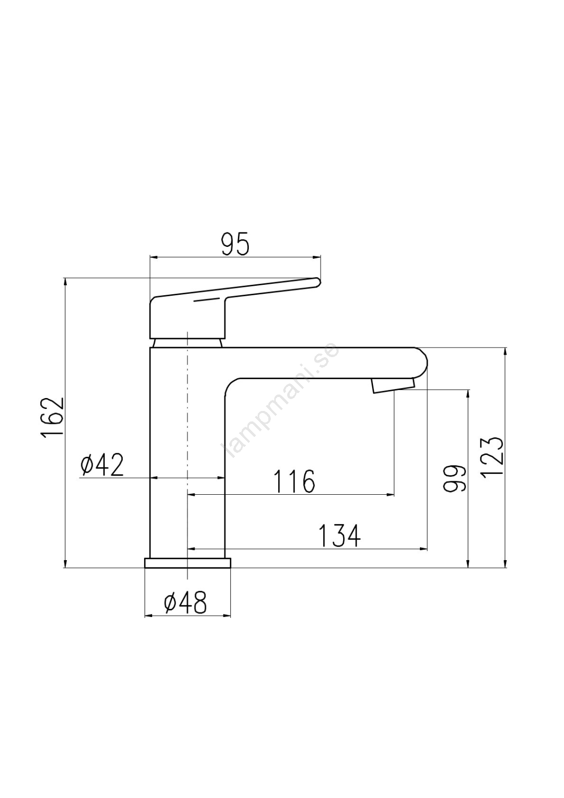 • Pelarmonterad tvättställsblandare utan bottenventil.