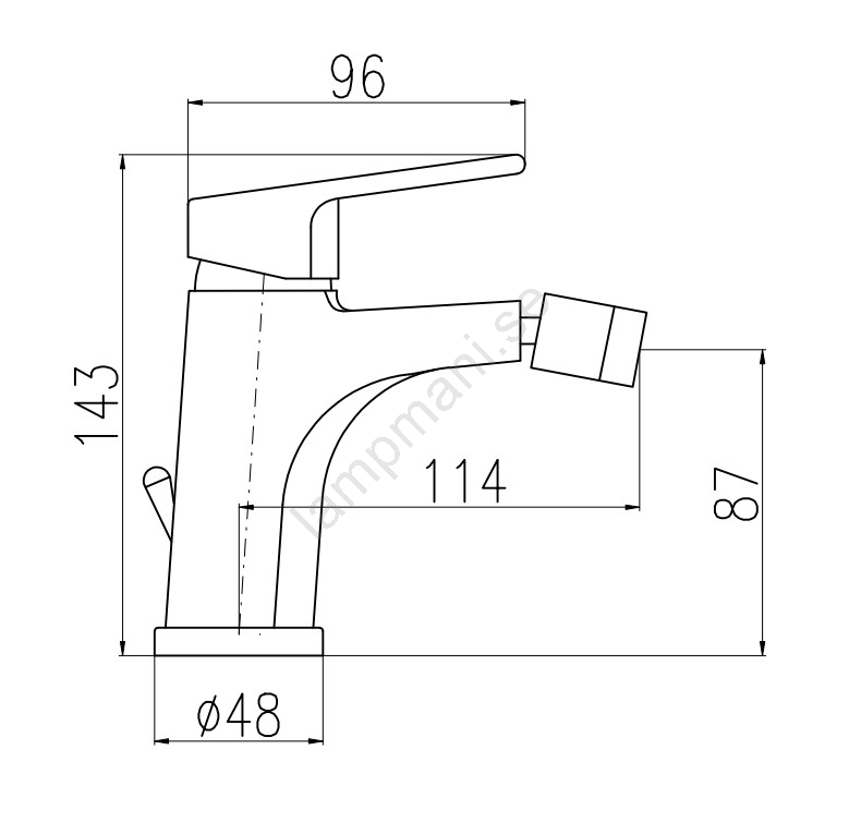 • Stående bidéblandare för montering på tvättställ, med avloppsventil.
