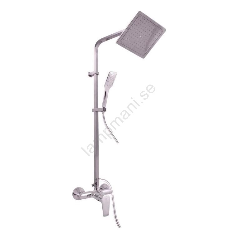 • Setet innehåller: duschblandare, kalkavvisande handdusch med en stråltyp, kalkavvisande takdusch (20 x 20 cm), duschslang i metall med dubbelmantel (längd 150 cm), duschstång med ett väggfäste.