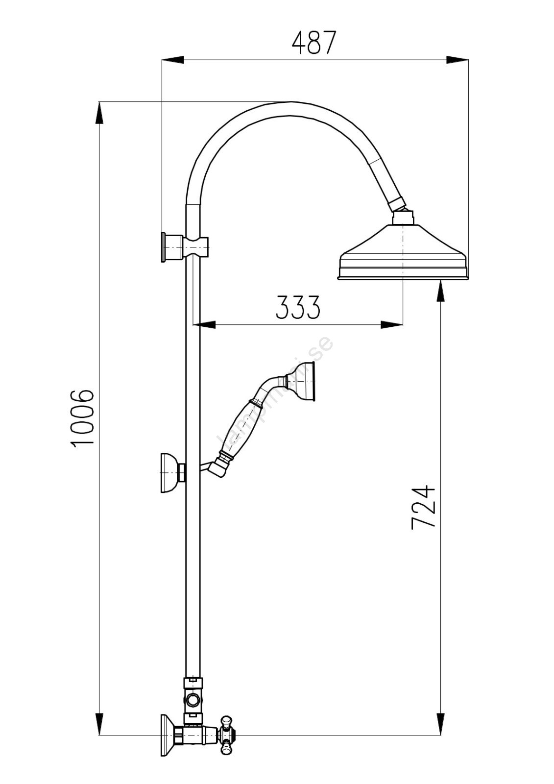 • Väggmonterad duschblandare med takdusch och handdusch.