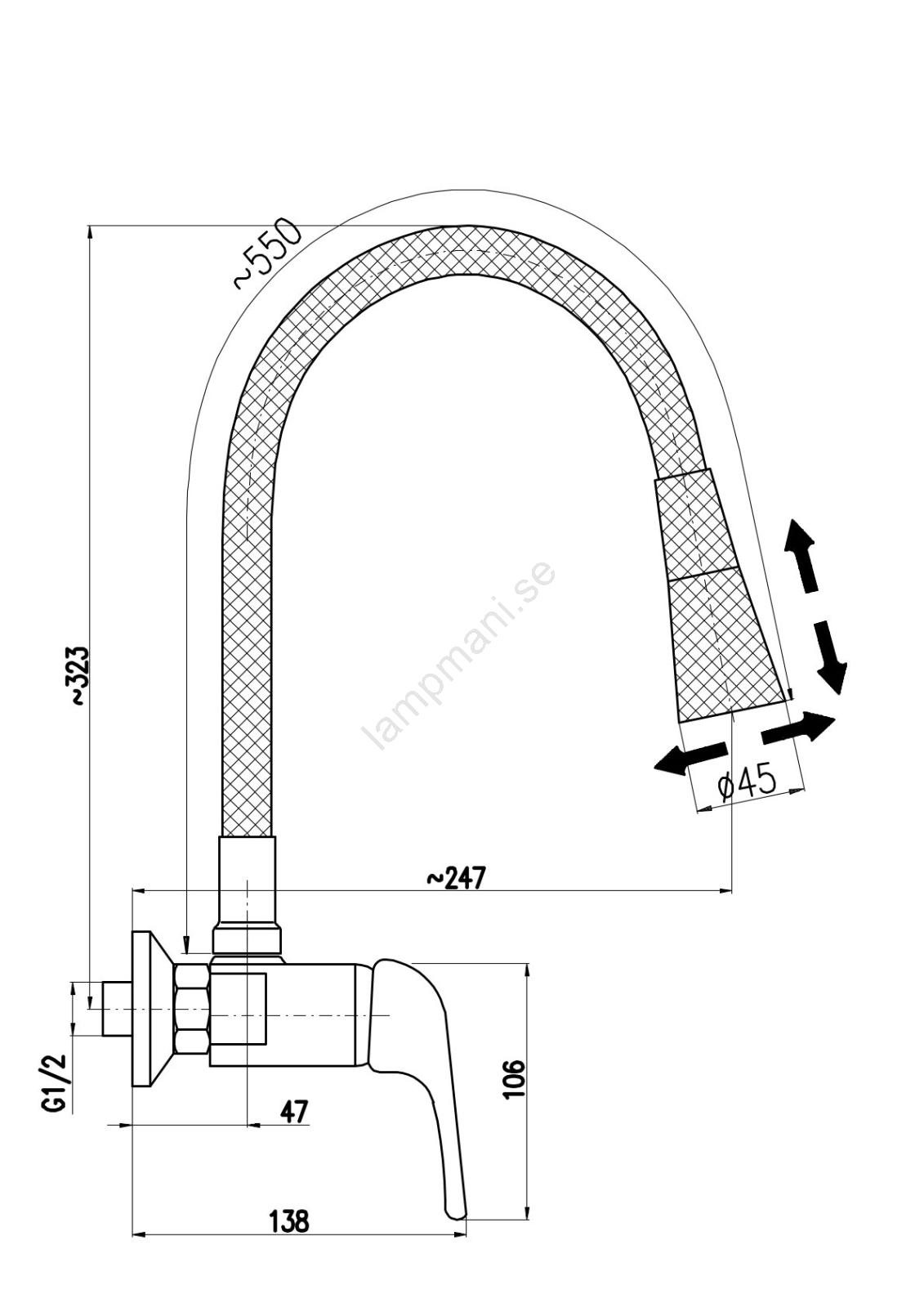 • Den praktiska svängbara pipen underlättar diskning av både kärl, diskbänk och handfat.