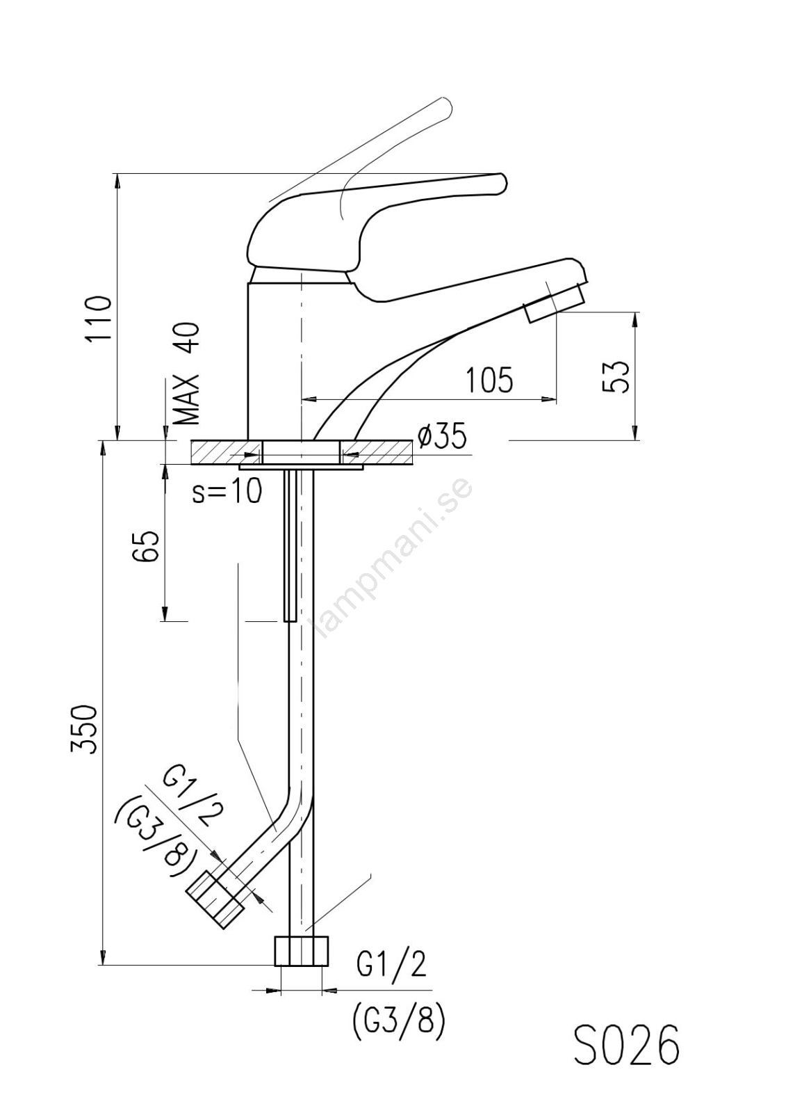 • Tvättställsblandare för montering på tvättställ, utan bottenventil.