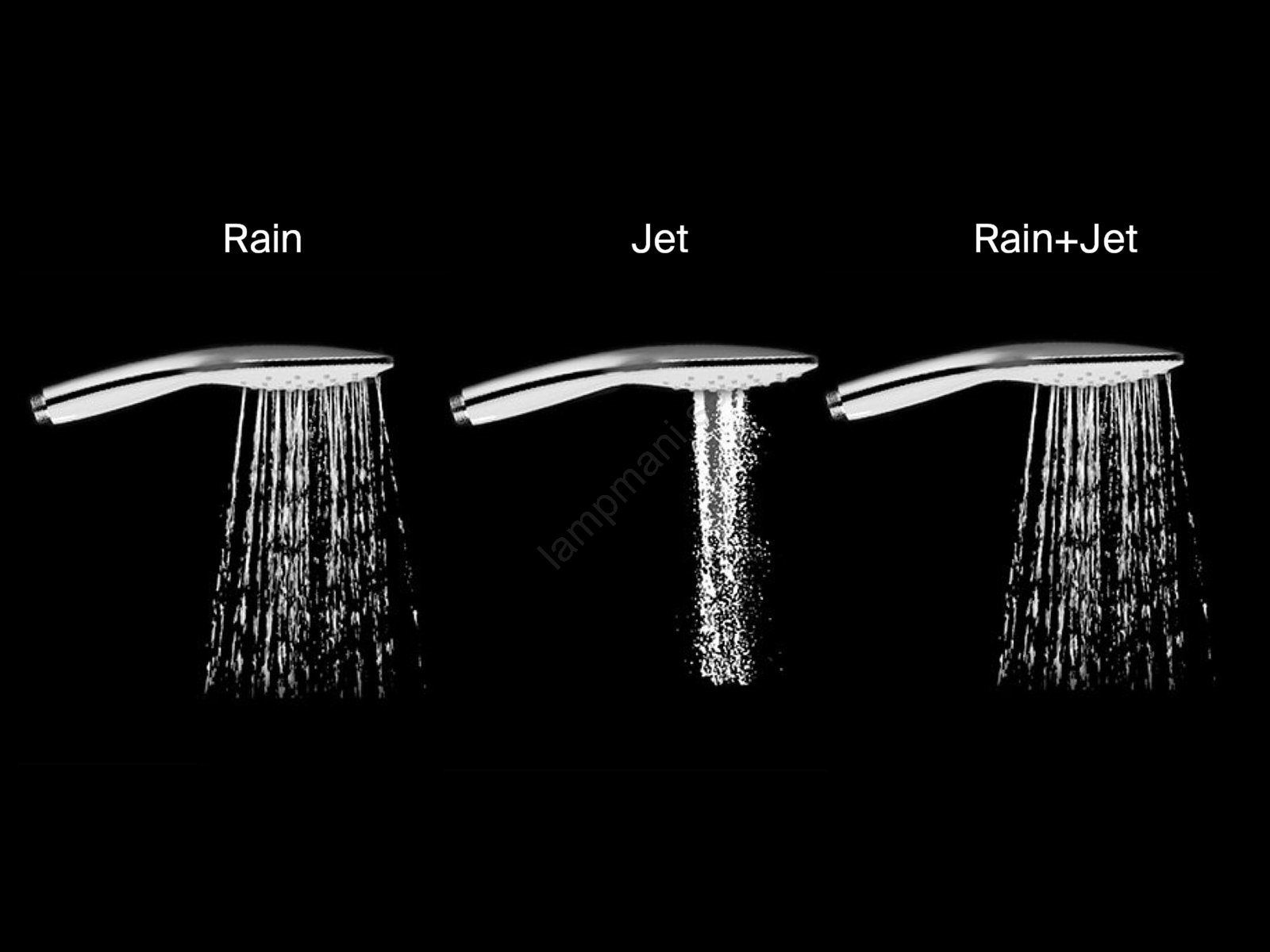 • Setet innehåller även en handdusch som erbjuder 3 olika strållägen.