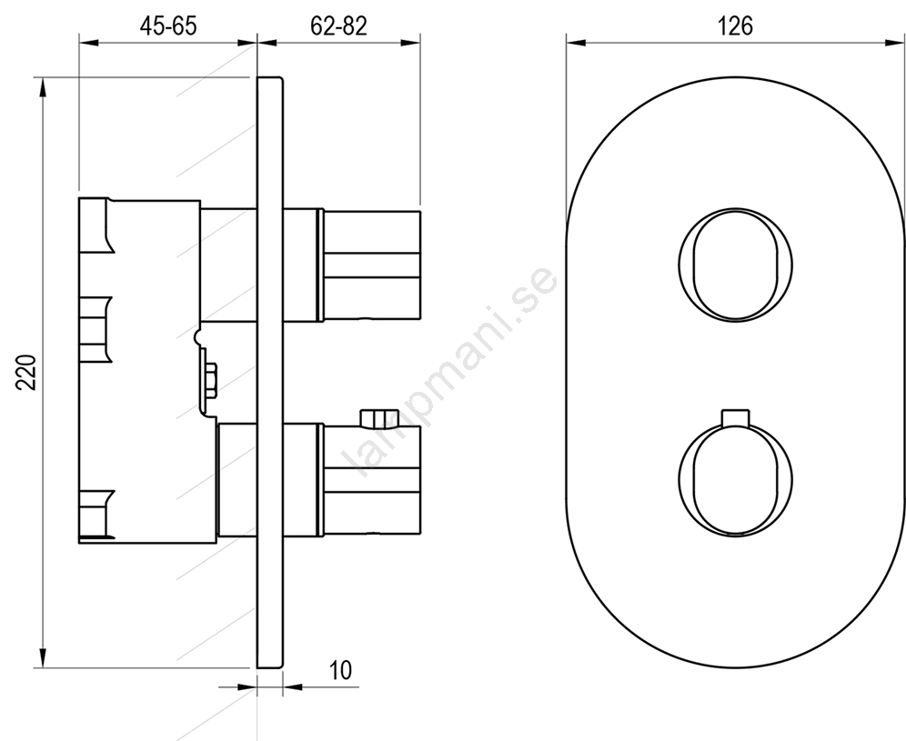 • Termostatisk infälld 2-vägsblandare Chrome II i elegant kromfinish är avsedd för montering i installationskropp.