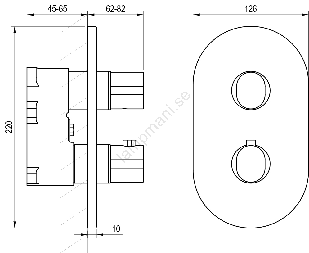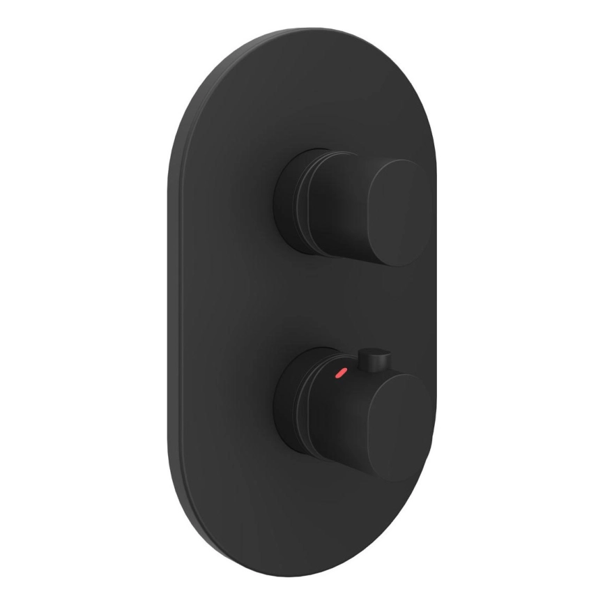 • Termostatisk inbyggd 3-vägsblandare Chrome II i elegant svart utförande är avsedd för montering i inbyggnadskropp.