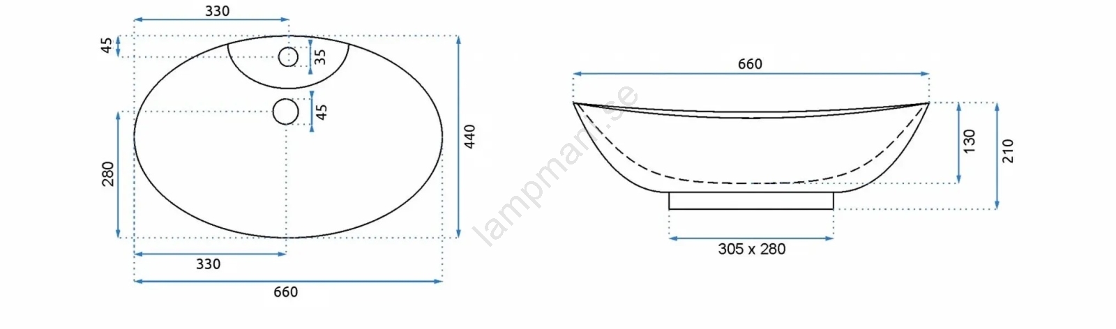 REA-00692 - Tvättställ för bänkskiva ROSA 44x66 cm keramik/högblank vit | Lampmani