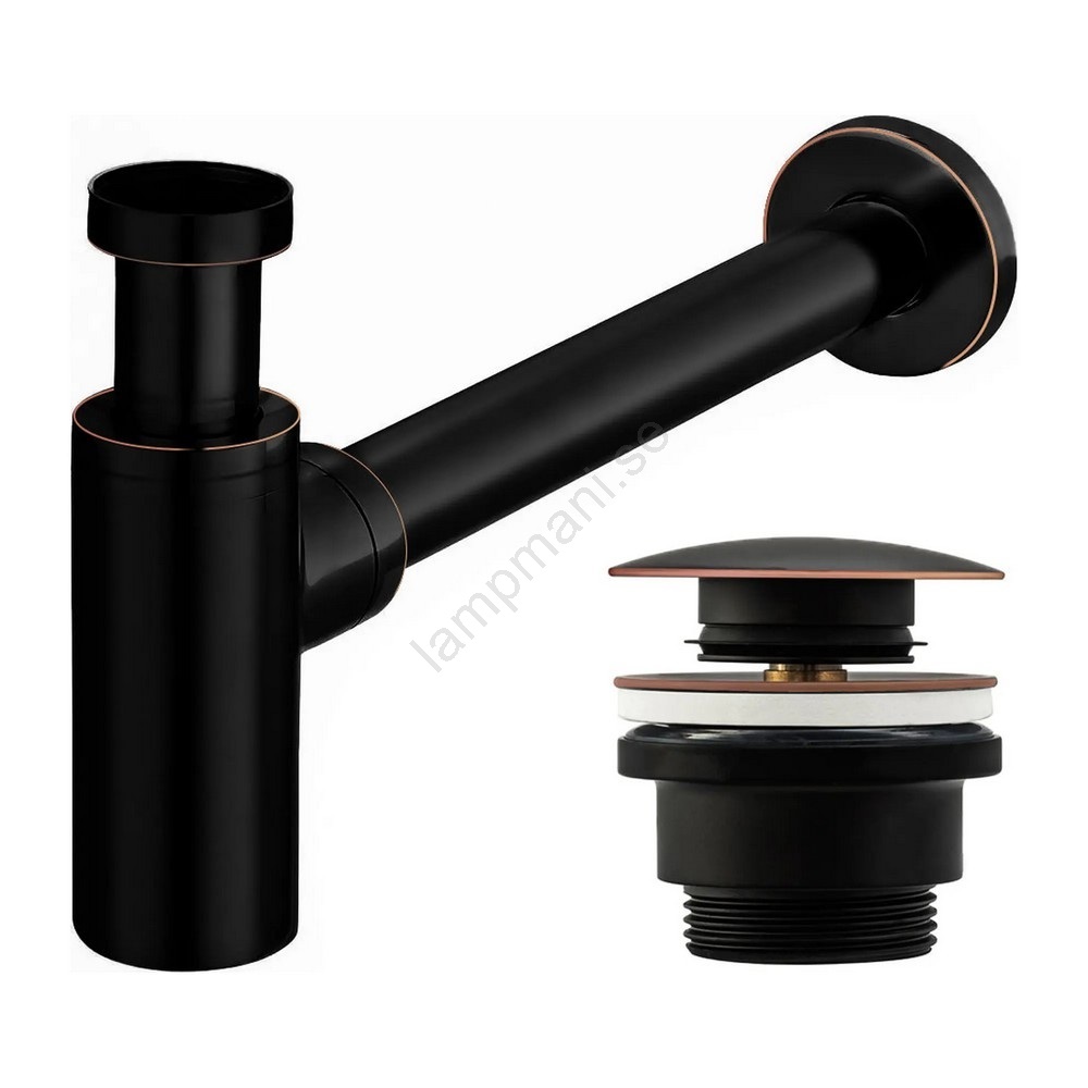 REA-A8536 - Tvättställssifon med CLICK-CLACK-bottenventil, svart | Lampmani