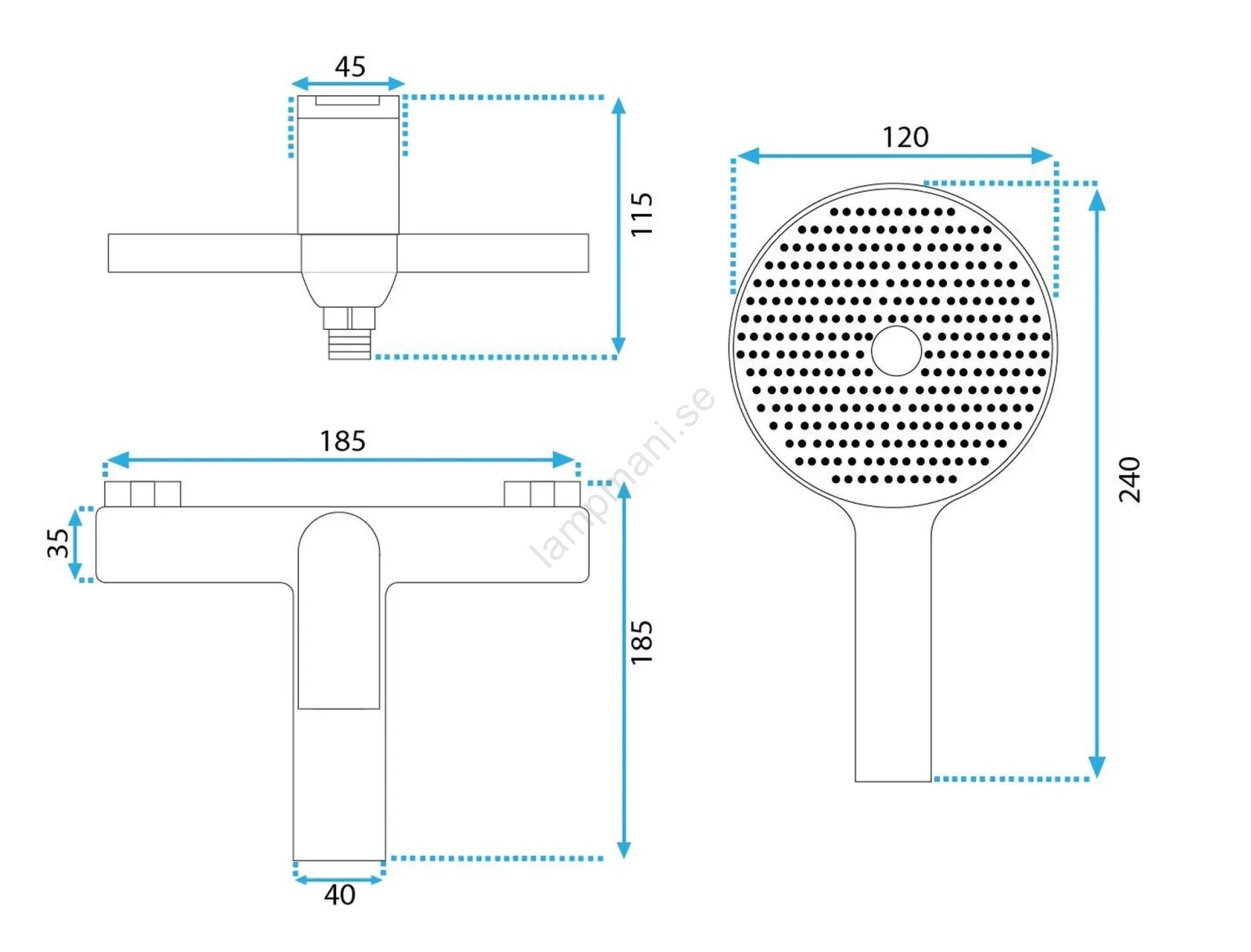 • Setet innehåller: badkarsblandare, handdusch, duschslang (120 mm), hållare för handdusch.