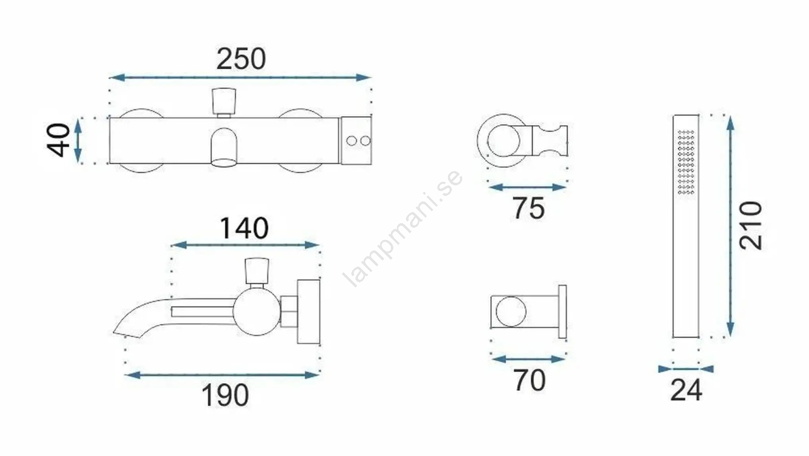 • Satsen innehåller: badkarsblandare, handdusch, duschslang (190 mm), hållare för handdusch.