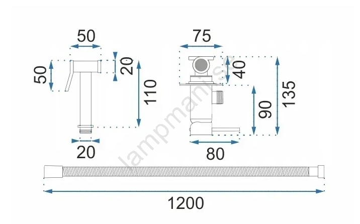 REA-B6311 -Bidéblandare med handdusch för inbyggd installation LUNGO borstad guld | Lampmani